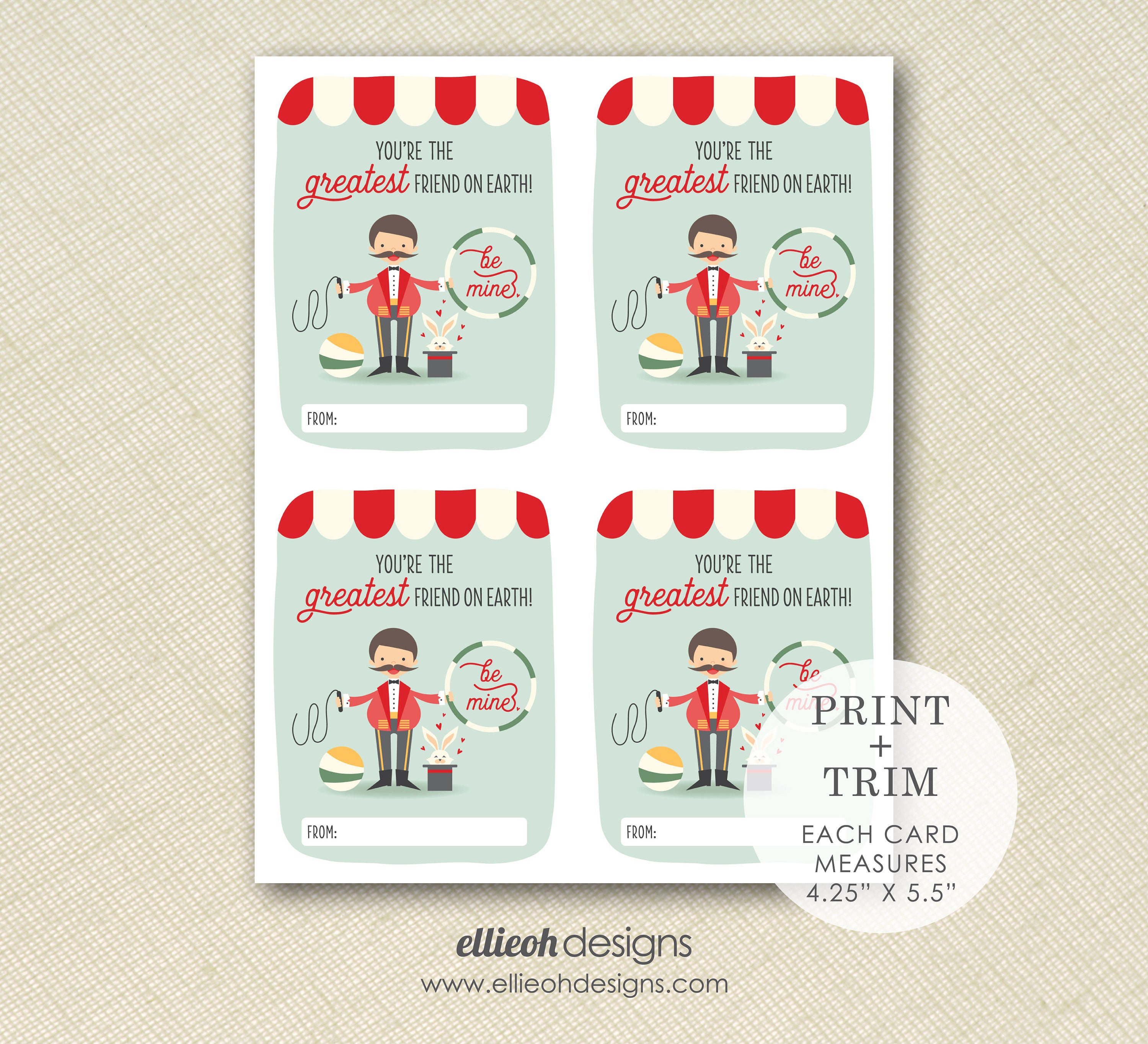This charming circus valentine is perfect for classroom parties! The digital file is sized flawlessly for printing on a standard sheet of card stock [8.5x11]. Each valentine will measure 4.25x5.5 inches and will fit perfectly into an A2 envelope. Purchase, download + print in minutes!