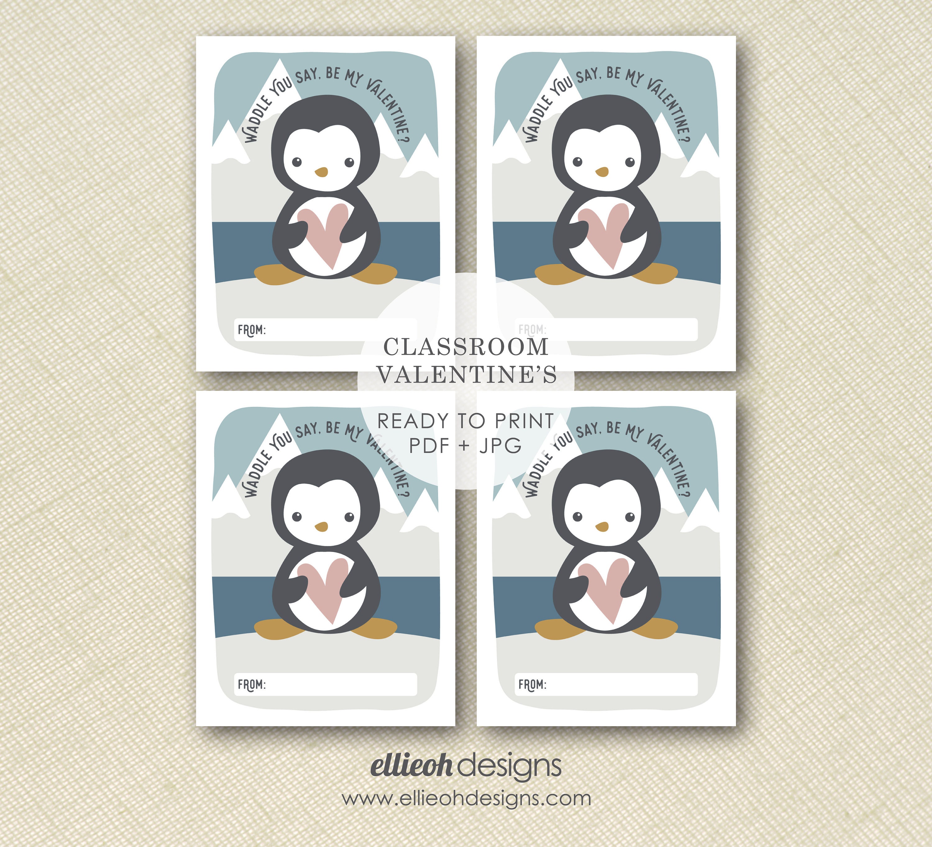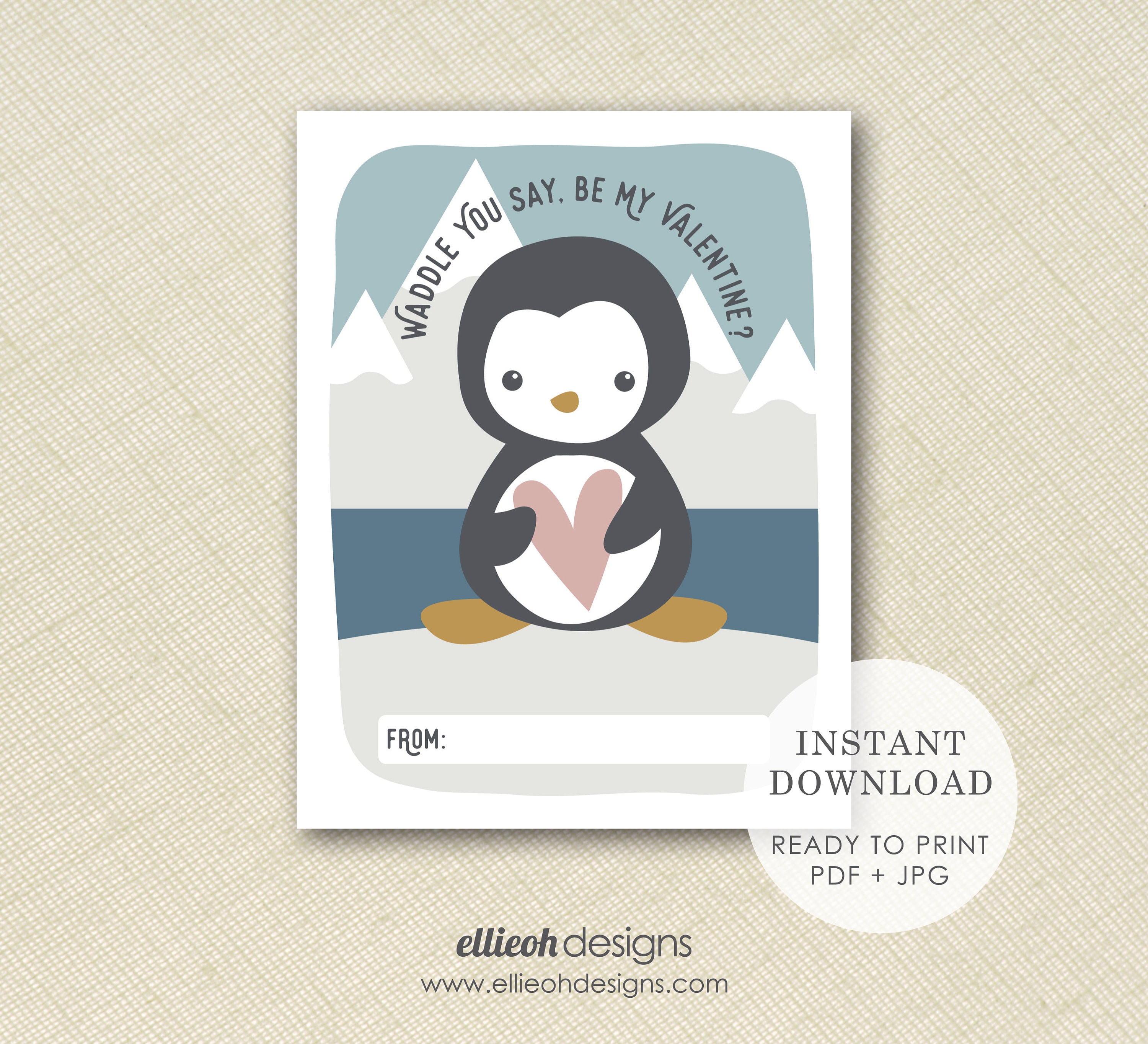 This lovable penguin valentine is perfect for classroom parties! The digital file is sized flawlessly for printing on a standard sheet of card stock [8.5x11]. Each valentine will measure 4.25x5.5 inches and will fit perfectly into an A2 envelope. Purchase, download + print in minutes!