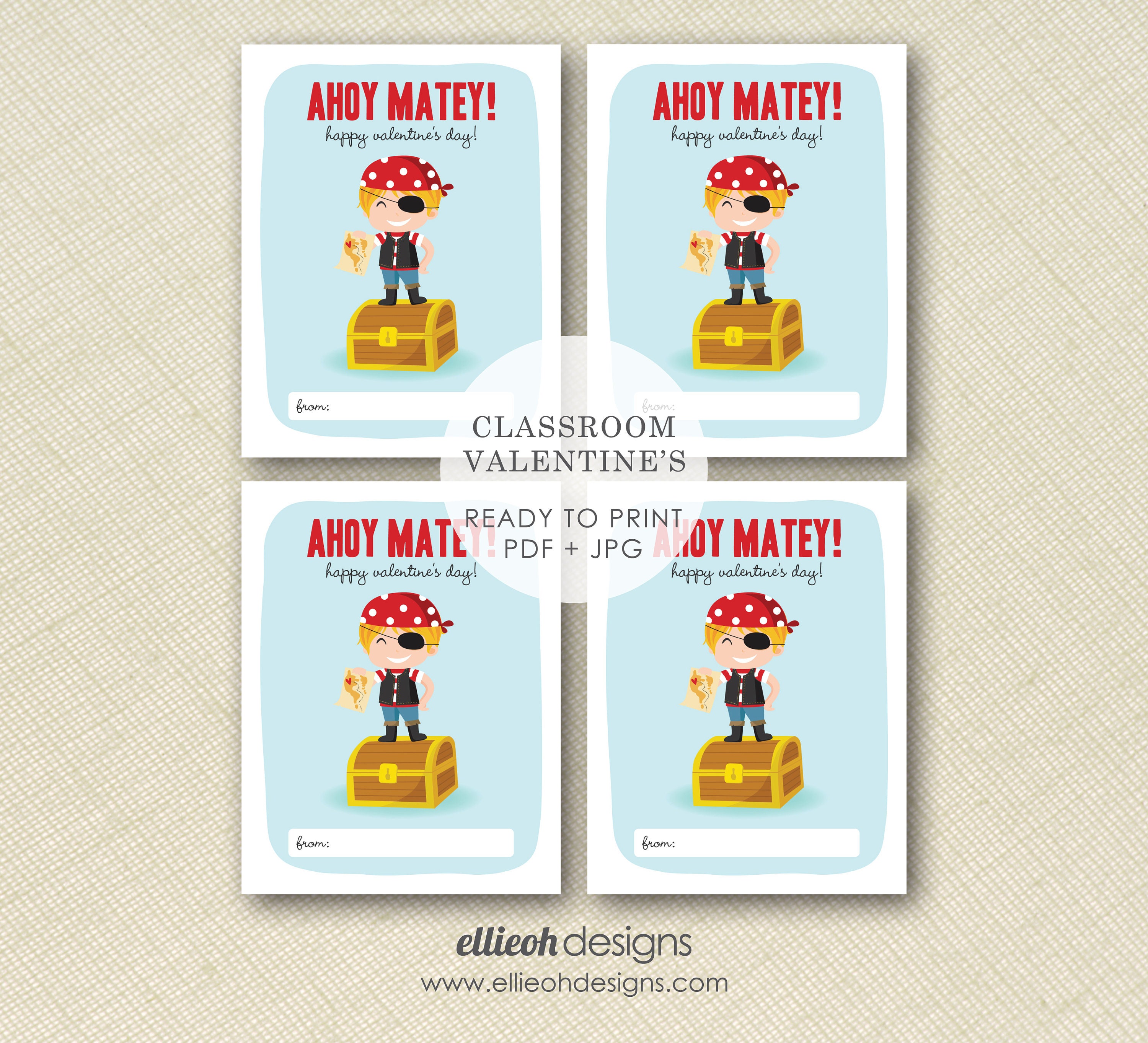 Ahoy matey! This delightful pirate valentine is perfect for classroom parties! The digital file is sized flawlessly for printing on a standard sheet of card stock [8.5x11]. Each valentine will measure 4.25x5.5 inches and will fit perfectly into an A2 envelope. Purchase, download + print in minutes!