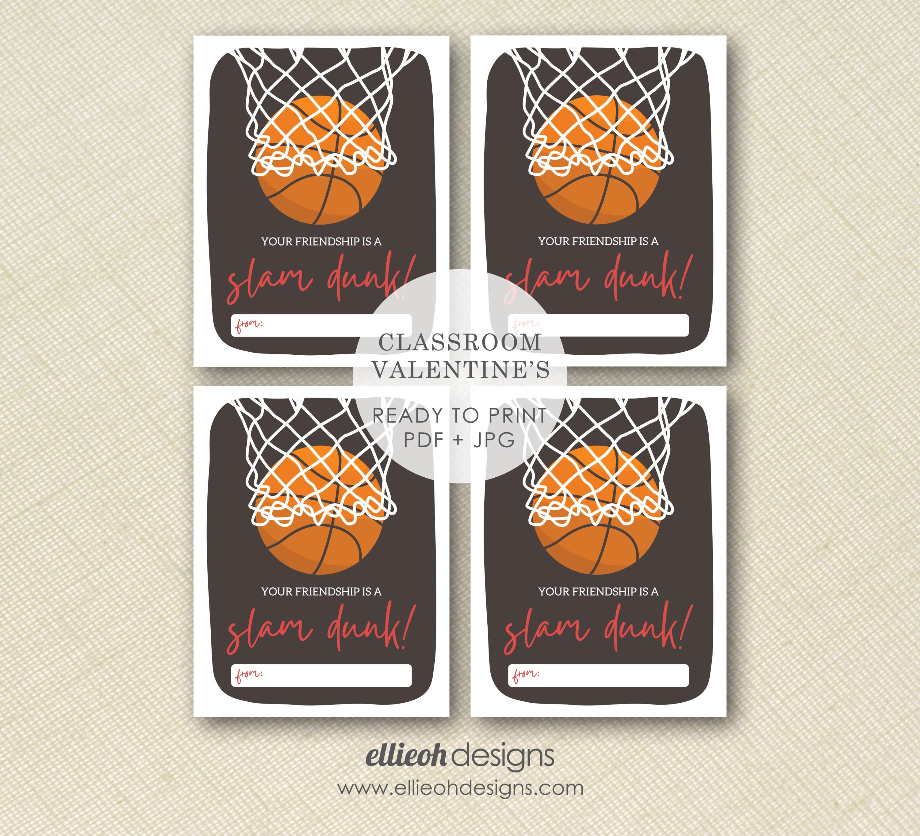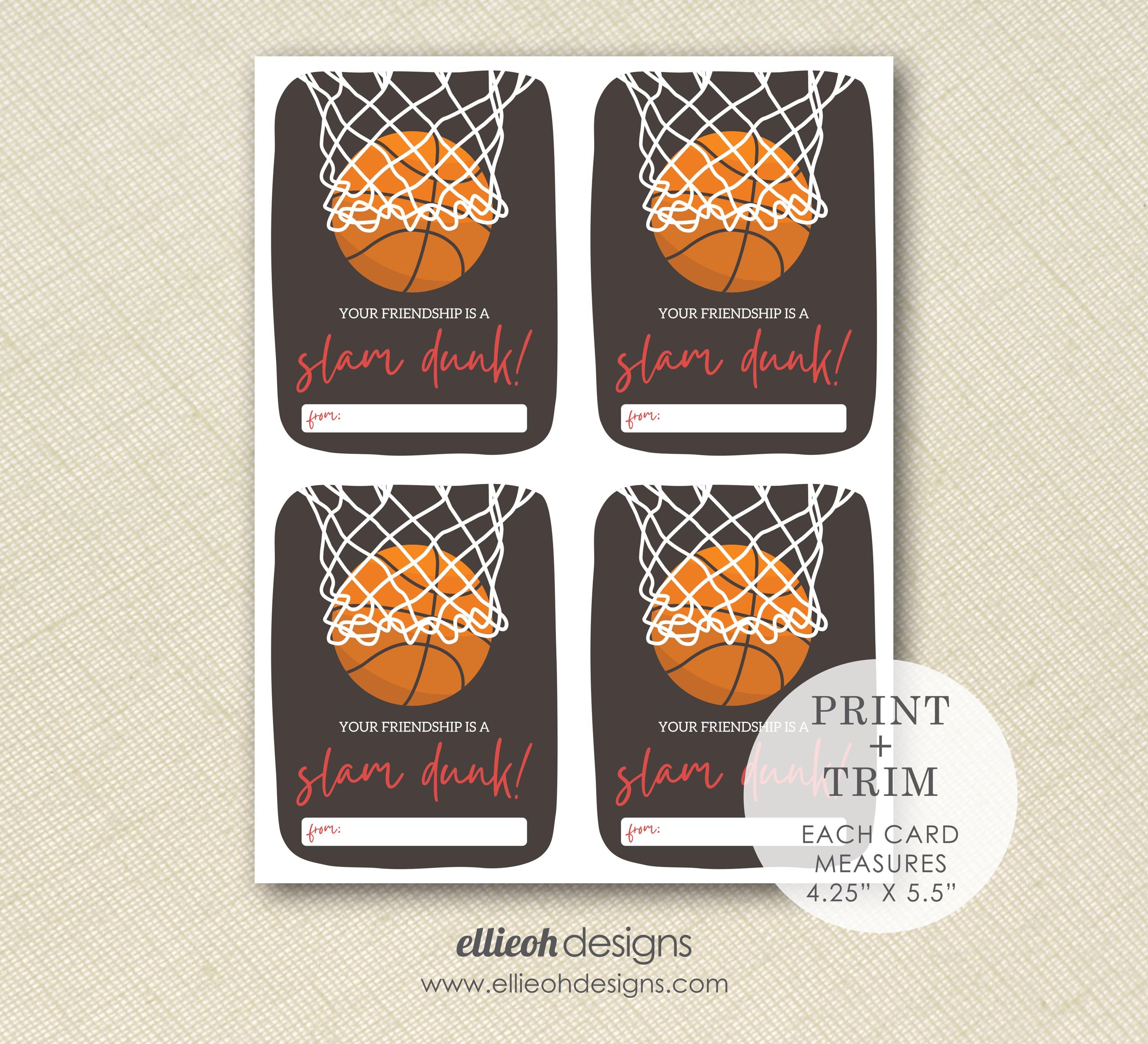 Score big this Valentine's Day with these fun basketball themed classroom valentines! The digital file is sized flawlessly for printing on a standard sheet of card stock [8.5x11]. Each valentine will measure 4.25x5.5 inches and will fit perfectly into an A2 envelope. Purchase, download + print in minutes!